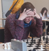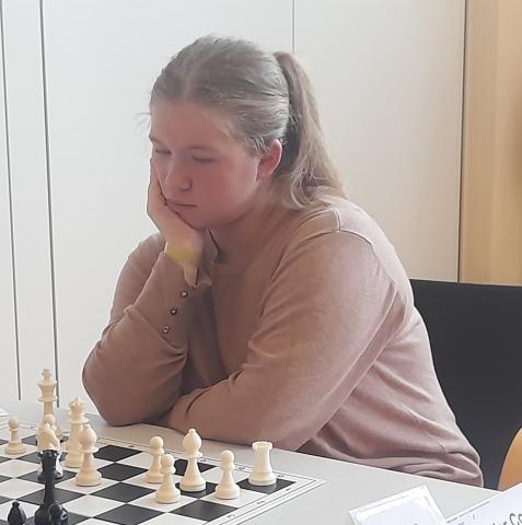Das zeigte sich in Runde vier: Cosima Müller konnte Martina Nobis am zweiten Brett den Punkt abringen. Da Anita Just am ersten Brett gegen die führende Olena gewann, bleibt das Rennen offen: Mit nur einem Punkt Differenz zu Platz 1 kann sich in den verbleibenden drei Runden auch Mara Stiehler auf Platz 5 noch Hoffnungen auf Treppchenplätze machen.
